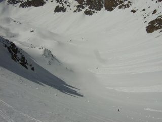 Paesaggio da favola. Grandiosa farina da cima a fondo. Visibilità buona. Sole a tratti. 3 persone in punta.