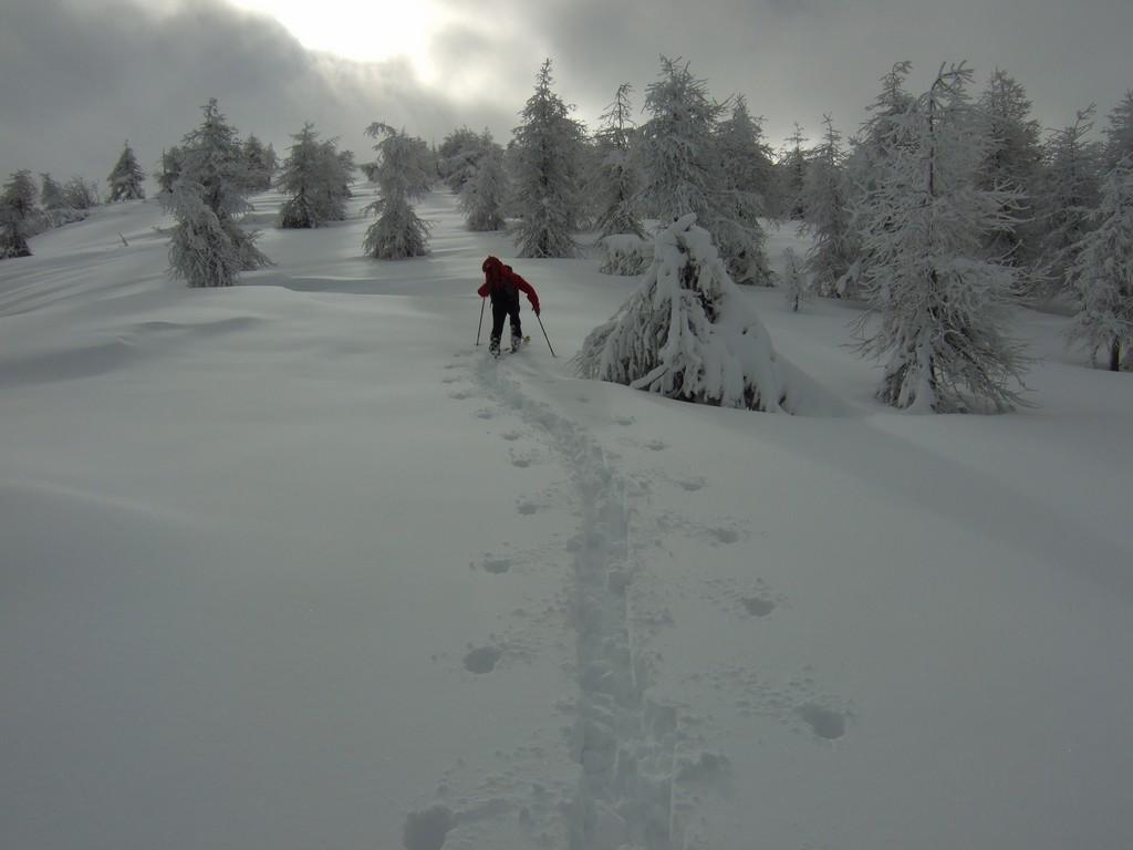 Gita su neve molto bella: spolverata di farina su neve compatta portante, disturbata solo da periodi di scarsa visiblità.
