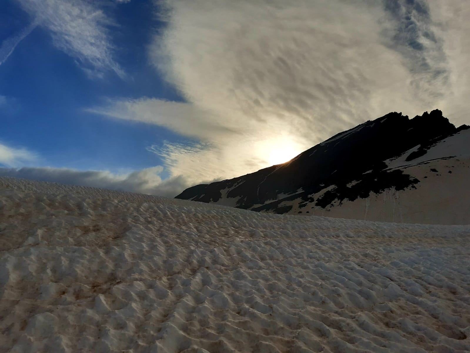 Erano anni che non vedevo il ghiacciaio così bello. Traccia ottima fino in vetta, leggermente sempre più ripida in zona seracco. Parecchio vento freddo dai…