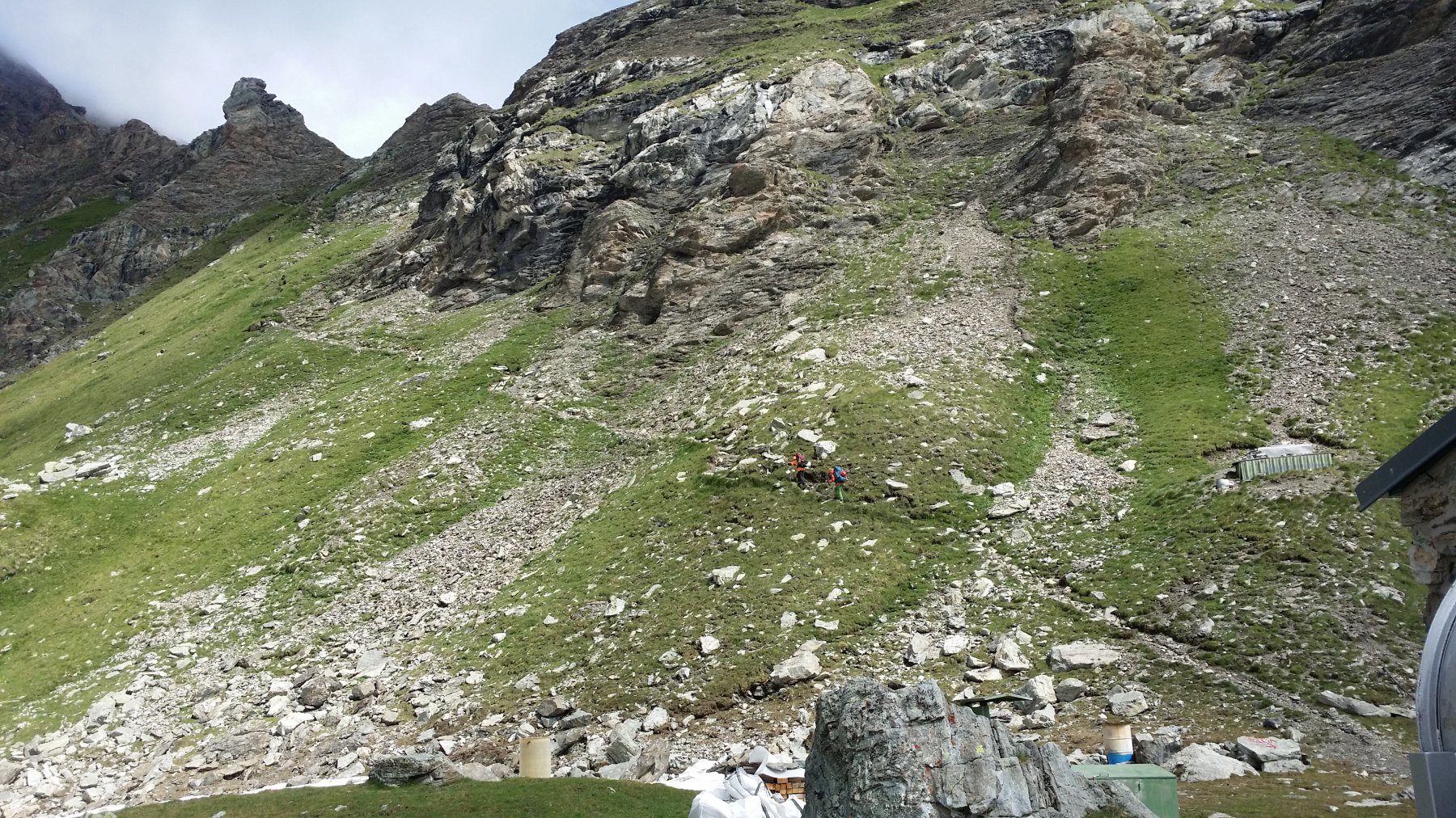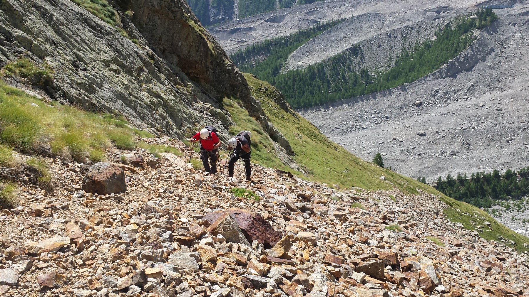 | ziotops | 1° guado...il 2° non è così banale... | ziotops | fatto ometto al 2° guado che guarda il grande masso | ziotops | altro ometto a sinistra | ziotops | fine del canale sfasciato | ziotops | iniziano i cavi | ziotops | vietato toccare l'erba pungente.... | ziotops | fine tratto attrezzato | ziotops | morena verso i prati del Brouillard | ziotops | oltre più nessun bollo giallo | ziotops | ...meta sudata
