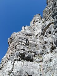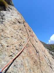 Bella nella prima parte con il tettino e il traverso di 5b, ben ammanigliato, e con il passo di 5c, azzerabile, nel 5° tiro. Poche, se…