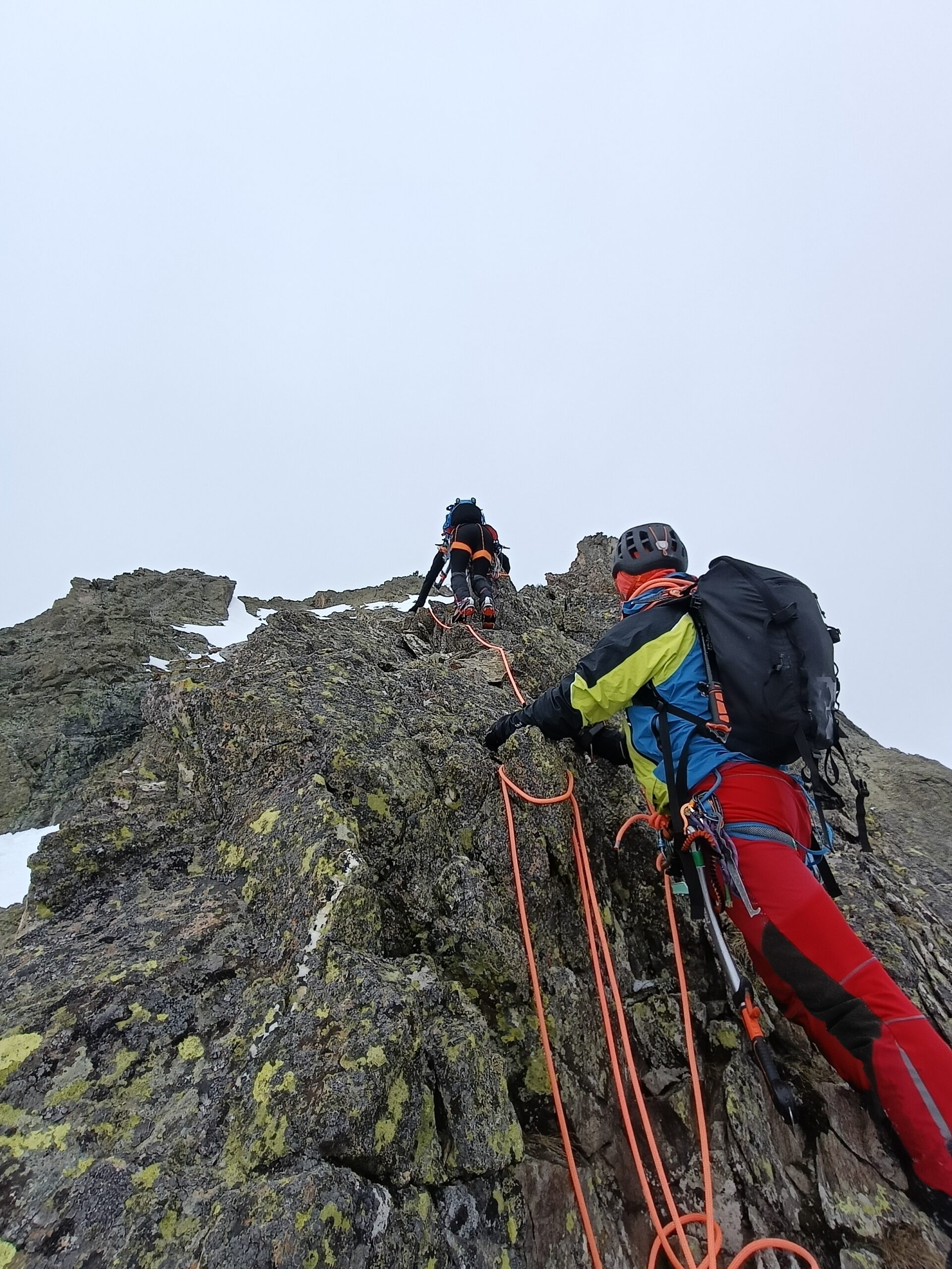 A mio avviso vale la pena fare lo sperone invece che la cresta, per poi congiungersi negli ultimi 4 tiri prima della vetta. Tiri molto belli,…