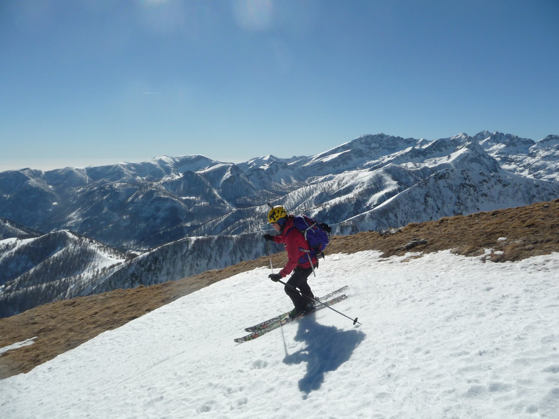 Al parcheggio arriviamo poco prima delle 9 e siamo soli ma l’illusione di aver fatto una scelta originale dura pochi secondi e arrivano altre 5 macchine… Stradina subito innevata e scorrevole, nel bosco salendo ancora farina leggera da tracciare. Appena si puntano gli assolati pendii la situazione cambia poca neve molto umida. Salendo la situazione migliora tra placche da vento e pseudo primaverile. Pala finale non male fatta due volte scendendo un po’ anche verso Limonetto. Dorsale e pendio sotto il forte molto bella poi sfondosa e poca fino a tornare all’ombra. Qui si toccano molte pietre… Boschetto in ombra divertente toboga con cinghialata finale prima della strada ben scorrevole che conviene seguire fino all’auto.