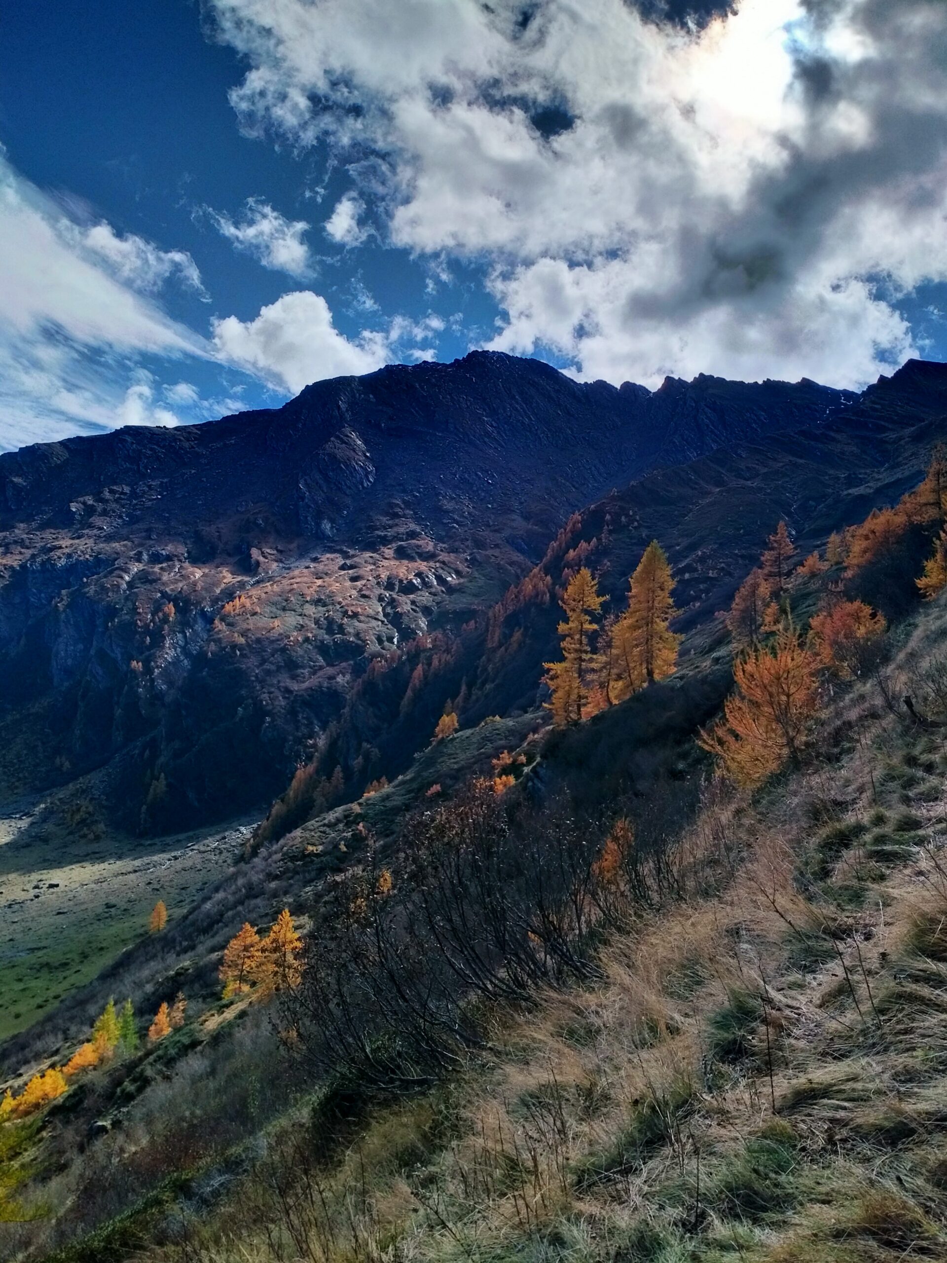 Vallone selvaggio e solitario, itinerario assai poco frequentato, panorama interessante e “insolito”.