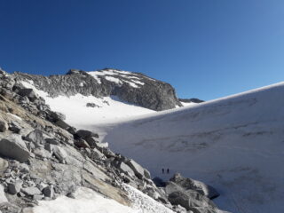 Ancora neve dura (all’alba) per arrivare all’attacco della Terzulli. Attrezzatura Terzulli in ordine. Piani di Neve in condizioni perfette con nessun crepaccio aperto.