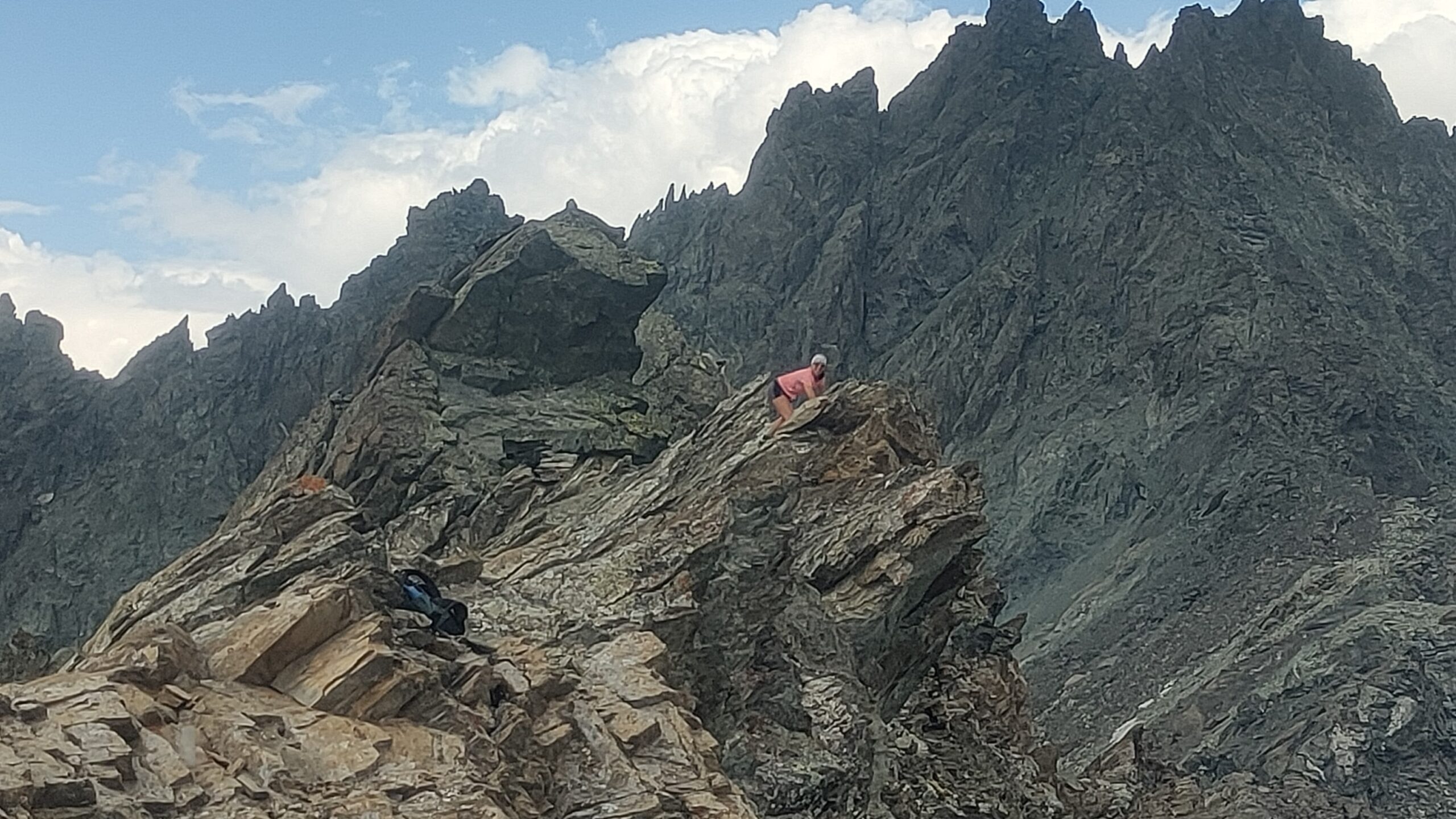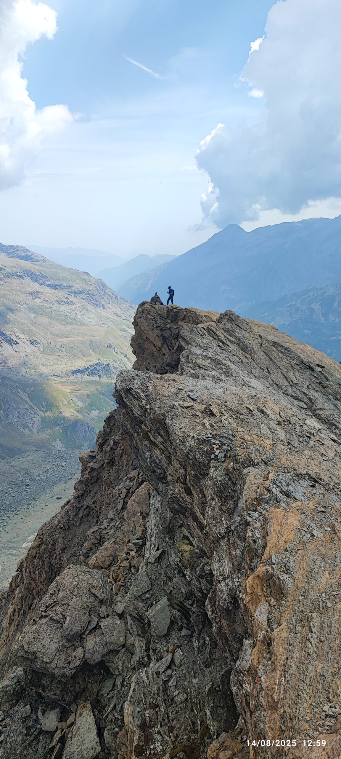 In cima la cresta porta ad un secondo sperone, ma si percorre solo con estrema conoscenza.
