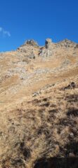 Parcheggiato un po prima della fine sterrata per poi avere l’auto a fine discesa dalla lunga e panoramica dorsale. Il pino solitario che indica l’accesso al canale è ancora li, come una sentinella. Bell’ambiente roccioso poi il tratto intermedio pendio misto e oltre nuovamente un canale roccioso più stretto con una bella parete a sx. Dal colletto un tratto delicato tra roccia ed erba ripida poi cresta finale molto divertente. In discesa sulla dorsale, incontrata una coppia in salita. Pochissima neve in alto che non da alcun fastidio.