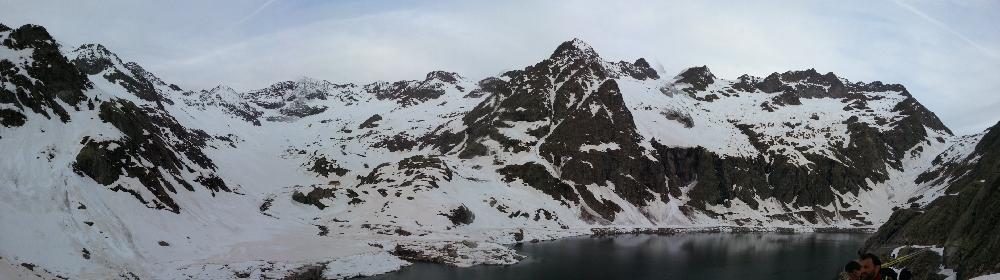 Per la discesa abbiamo nuovamente diviso il gruppo, Ivo ha sceso il canale, mentre Fabry, Andrea ed io abbiamo seguito la salita normale estiva scendendo dapprima in direzione della bassa di Margot (35/40°) e poi per pendii in direzione del lago Brocan, arrivandoci sfruttando uno dei tanti canali ad oggi ancora ben innevati.