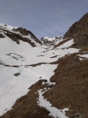Diverse persone sulla strada , i traversi alti si passano bene. Il Truc nella parte finale è quasi privo di neve.