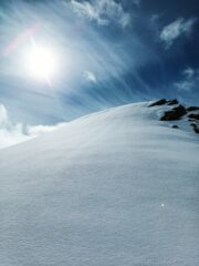 Abbiamo messo le ciaspole sotto il canale che sale al Seru. Prima abbiamo seguito la strada reale .Il ponte di legno non c’è più, ma per ora, si scende nella gorgia innevata e si attraversa. Molta neve fresca e non ancora trasformata. Mattinata col sole e verso le 13 tutto coperto.