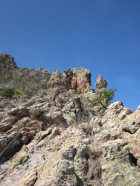 Il sentiero di discesa è in effetti un po’ insidioso nella prima parte, dove tuttavia ci sono numerosi tratti attrezzati con cavi e gradini, poi nessun problema fino all’auto.