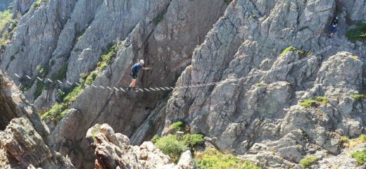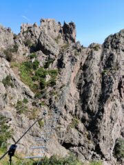 Bella ferrata coinvolgente ma mai problematica, sempre divertente. Brevi tratti di camminata e un po’ di strapiombi.