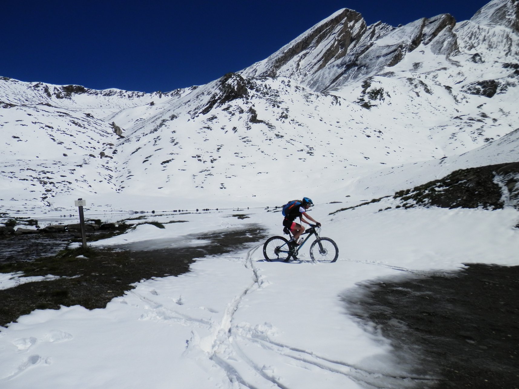 partiti dalla diga di pontechianale, spettacolo mozzafiato per la neve effimera della salita (perchè siamo lenti e in discesa era già sciolta 🙂 con Luisa e le nostre mtb