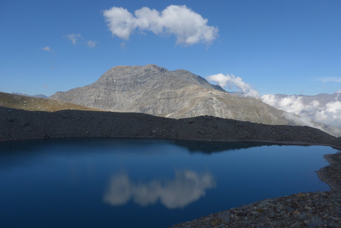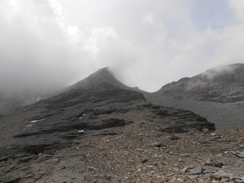 Si risale su sfasciumi e roccette fino al colle superiore dell’Agnello. Qui si devia a nord (neve fino a tarda stagione) e si risale il facile pendio detritico fino alla vetta.
