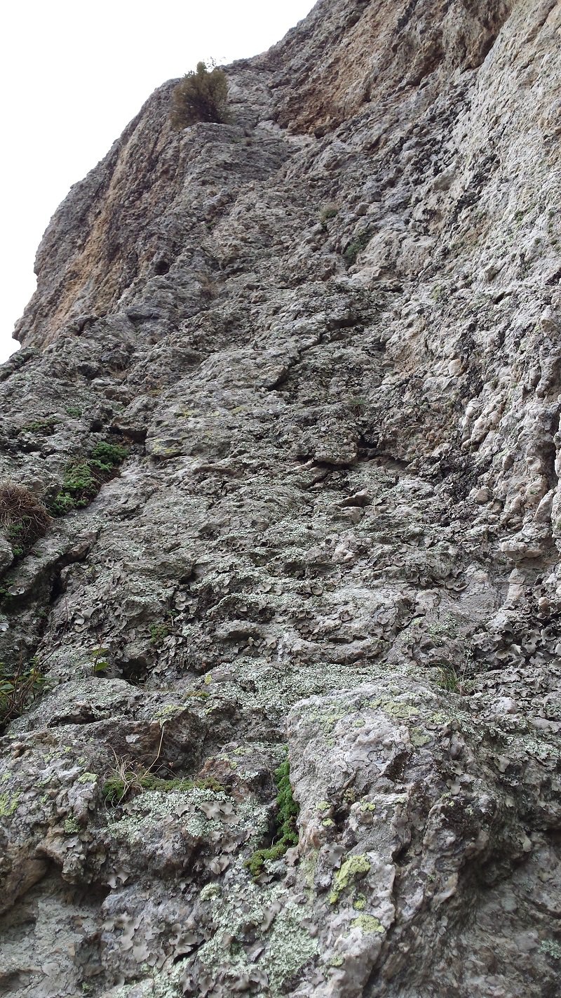 Bella via di tre tiri con difficoltà massima di 5b. Partiti con l’intenzione di scalare al sole e al caldo, invece abbiamo arrampicato nella nebbia e al freddo….pazienza, la bella compagnia ha aggiustato la giornata.