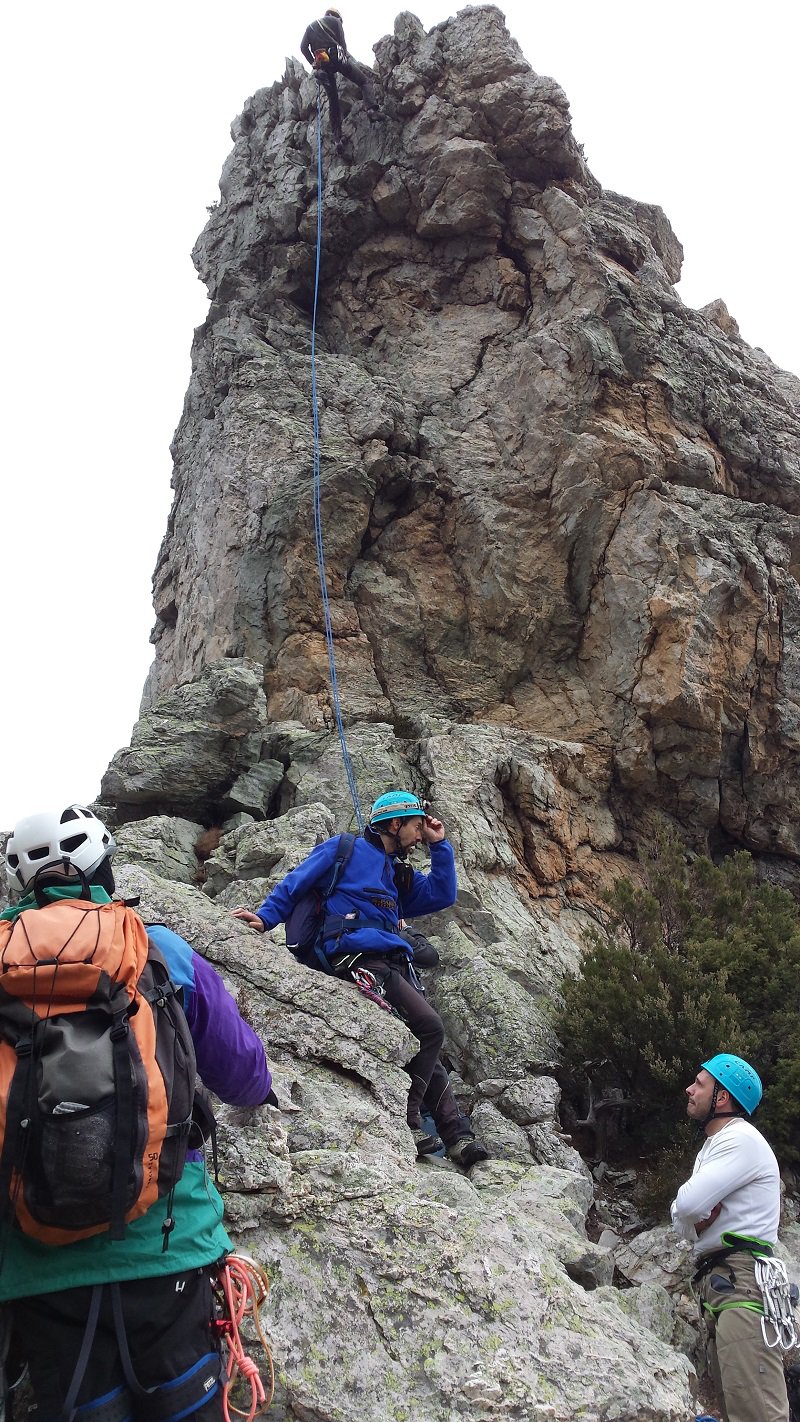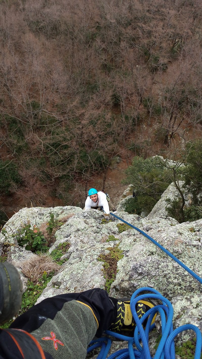 Bello il primo tiro in traverso, bisogna solo fare attenzione al muschio insidioso nella prima parte, ma nel tratto di 5b è abbastanza pulito. Il secondo tiro è completamente sullo spigolo e il passo chiave (5b) richiede un po di forza e decisione. l’ultimo tiro è una bella placca, chiodata un po’ lunga e molto lichenata. Nel complesso una bella uscita grazie anche all’ottima compagnia di Alberto, kevin e Federico (altra cordata su questa via) e di Giacomo e Rino sulla cresta sud est