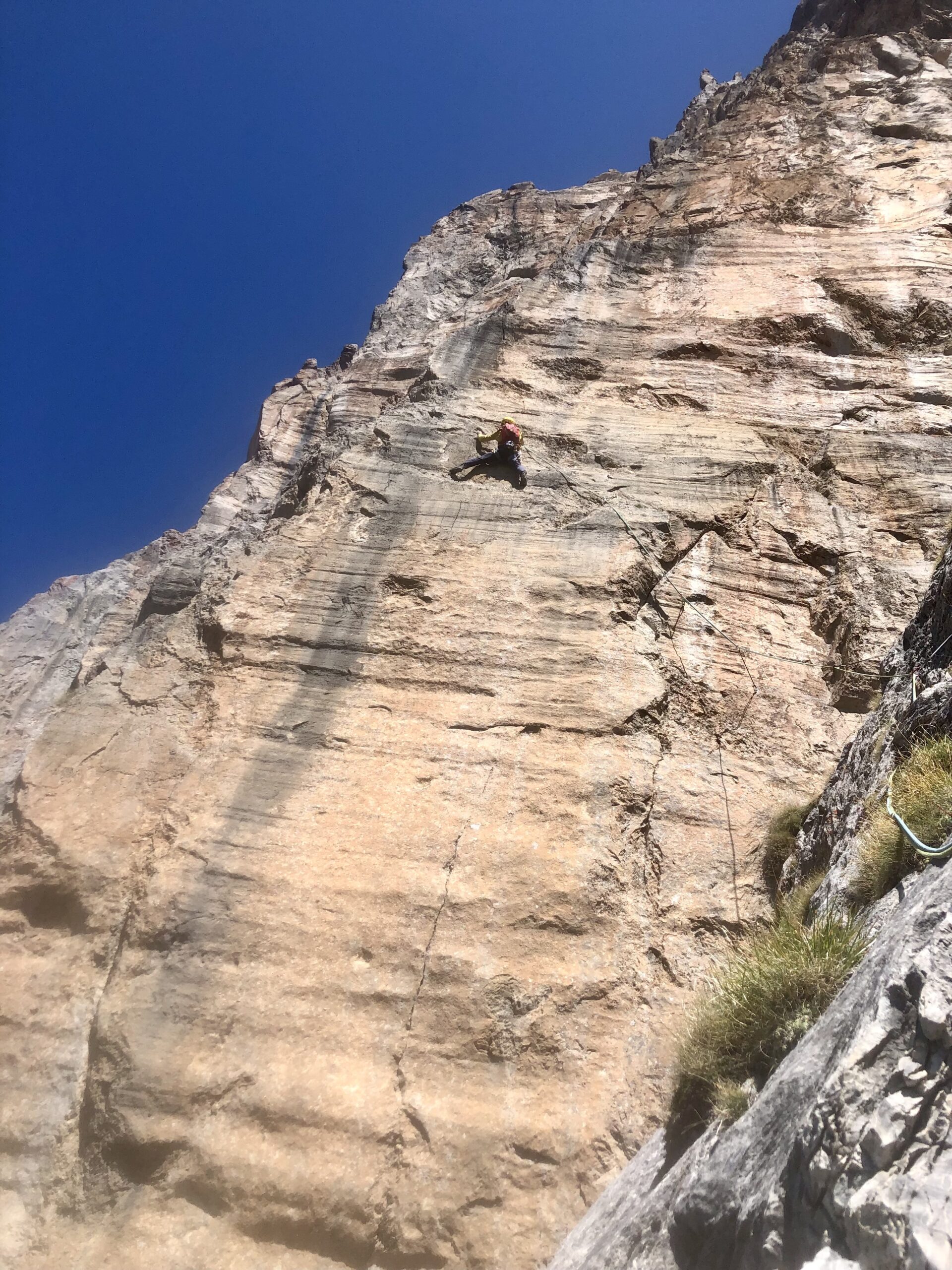 6ctiro capolavoro parte da una placca poi in traverso supera un muro di roccia straordinaria e finisce con una dulfer su uno spigolo.