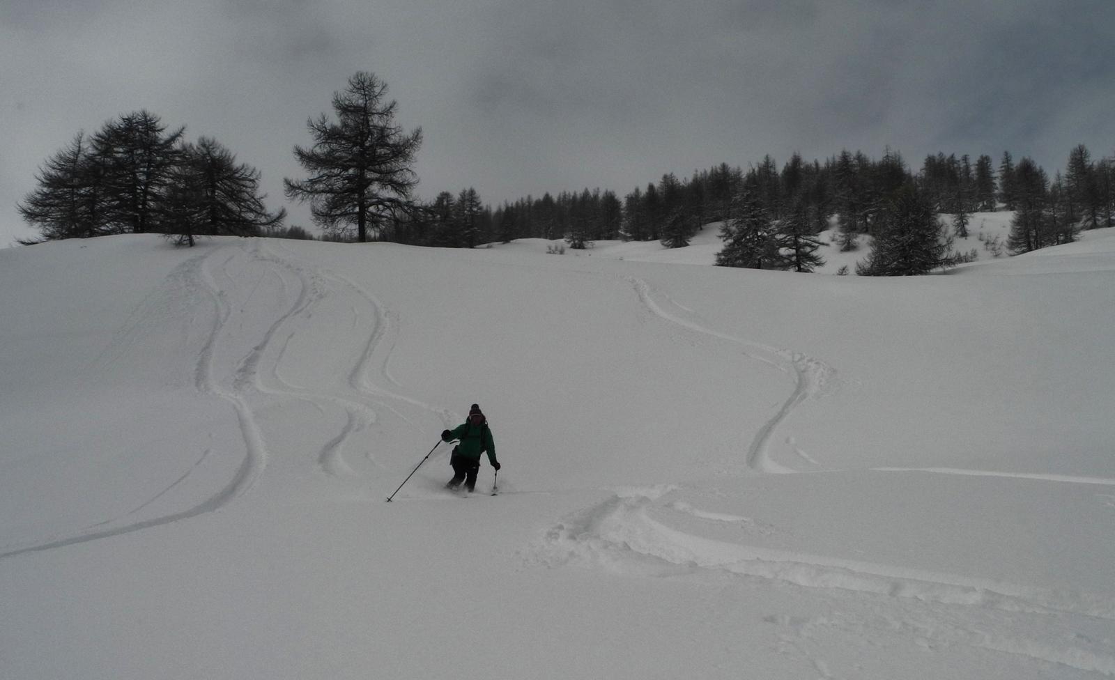 Mentre pian pianino tutt’attorno andava chiudendosi una bella finestra di sole ci regala una salita con discesa altrettanto fantastica.Tanta gente al Moncrons, mentre al Pitre solitudine totale e tutto da battere…Zalet un po’ delicata come sempre, valloncello al momento sicuro. Discesa commovente…con Luke, Matte e Federica. (nota marco c.)
