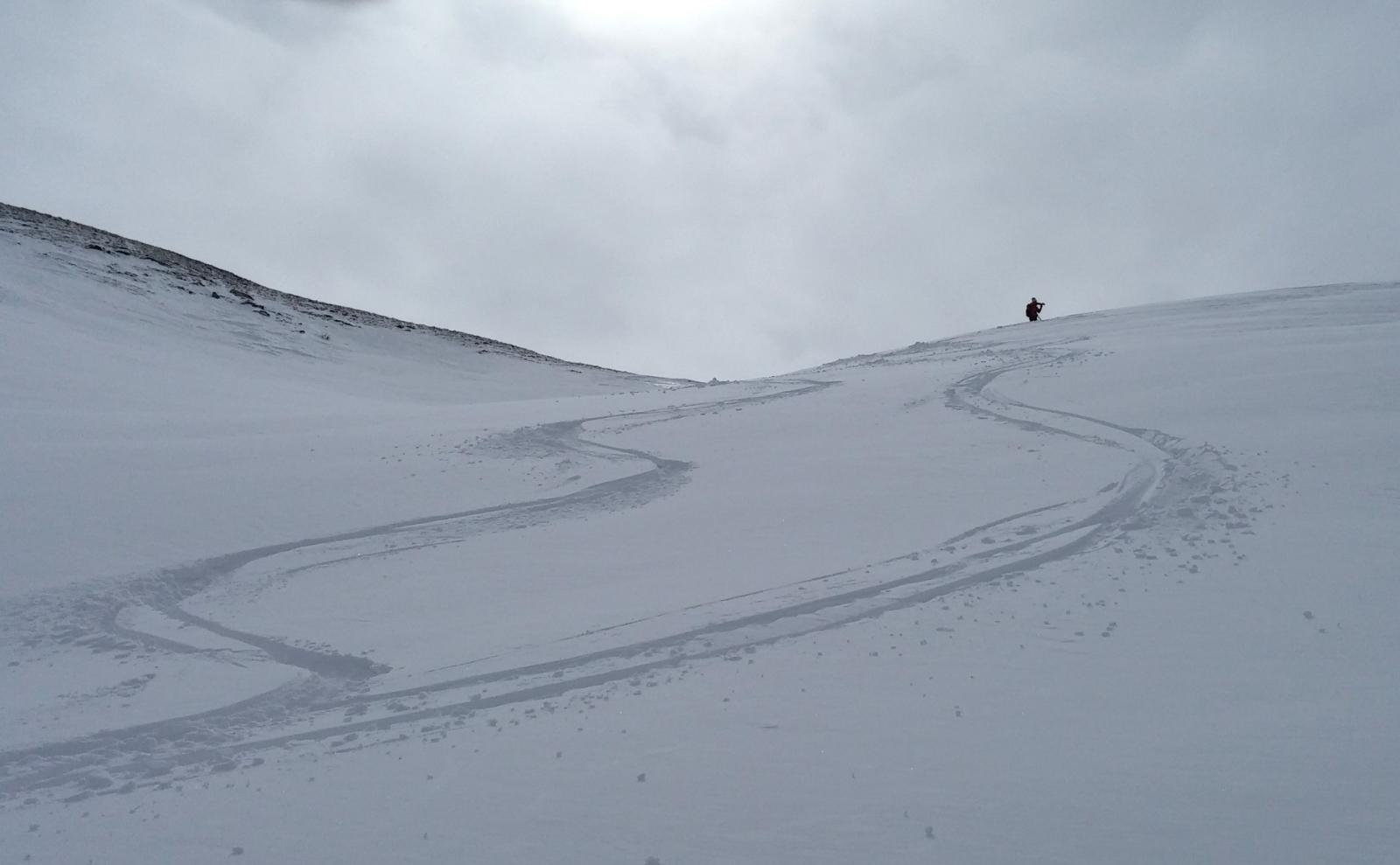 Nonostante il dislivello ridotto e la comodità di accesso oggi è venuta fuori una gitarella avventurosa… qualche tratto con gli sci sulle spalle nella parte alta della costa (a tratti pelata o con placche ventate) e la costante attenzione da tenere nel vallone di discesa ci hanno regalato un sapore un po’ più alpinistico del solito.