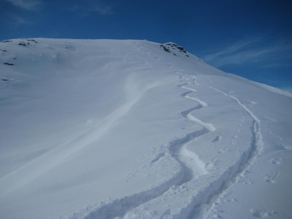 Piacevole gita con splendido ambiente invernale. Nonostante gli impianti a vista piena solitudine con neve fresca da tracciare in aumento da 10 a 25 cm. Ottima farina nella parte alta e in tutte le radure non troppo soleggiate. Meno bella ma ben sciabile nel bosco fino al fondo tranne tratti soleggiati già zoccolosi. Attenzione alle pietre sulla crestina finale. Un pò di spinta al fondo del valloncello dopo il colletto.