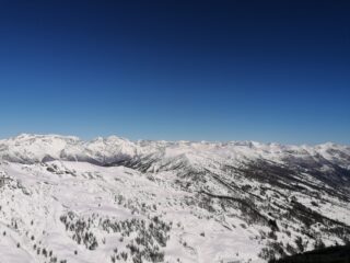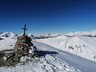 Oggi invece super silenzio, ben soleggiato, con ottima copertura di neve da cima(solo qualche metro con pietre evitabili sotto la vetta) a fondo..