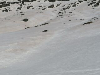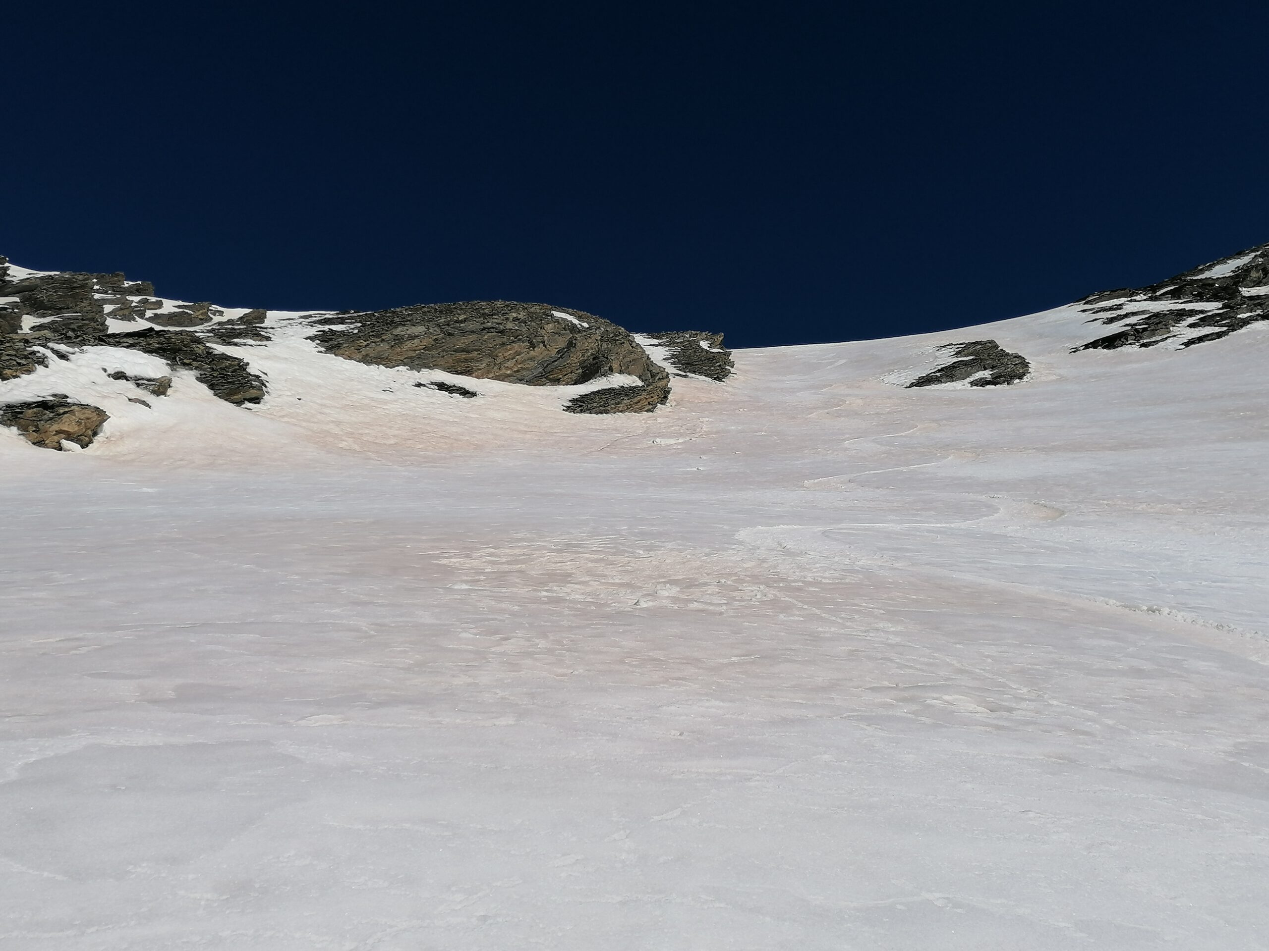 Strada per arrivare all imbocco del vallone di soustra con un tratto senza neve (sono salito tagliando per prati). Sentiero che porta al pianoro da fare a piedi e anche il pendio erboso per entrare nel vallone del pis, dopo di che c’è neve quasi continua. Risalito fino a 3000 con split e rampanti poi continuato a piedi con ramponi, facilmente con gli sci e un po di tecnica(che io non ho) si arriva alla spalla sotto la cima sci ai piedi. Dalla spalla con un taglio expo nord in breve si arriva in cima. Panorama pazzesco dalla cima. Per non ritornare alla spalla sono sceso(11.30) poco sotto la punta in un breve canale abbastanza ripido che porta direttamente sulla via di salita.bella discesa in tutto il vallone su neve mollata il giusto. Io sono sceso tutto a sinistra per arrivare piu in basso possibile poi sono sceso in un canale ripido e pietroso, vicino alla cascata, fino al pianoro comunque conviene rifare il percorso dell andata. Si scende ancora tutto il pianoro tranquillamente poi a piedi sul sentiero che riporta su strada e da lì con un gava/buta si arriva alla macchina.