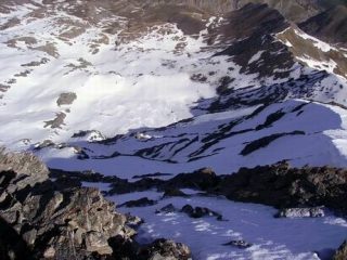 bella discesa, consigliata. ottimo innevamento nella conca ondulata che permette di raggiungere l’aiguillette e sulla parete nw. sceso alle 10:30 su crosta rigelo portante in parete e poi bella trasformata sino alla base del canalino che adduce alla Breche de Ruine (non innevato).Trasformata anche dalla Breche sino al col vieux poi su ultime lingue di neve pesante e non portante sino al colle dell’agnello. Poi lunga attesa per il passaggio del giro d’italia…con filosman e la banda bergamasca.
