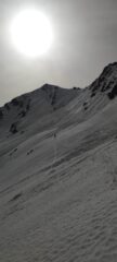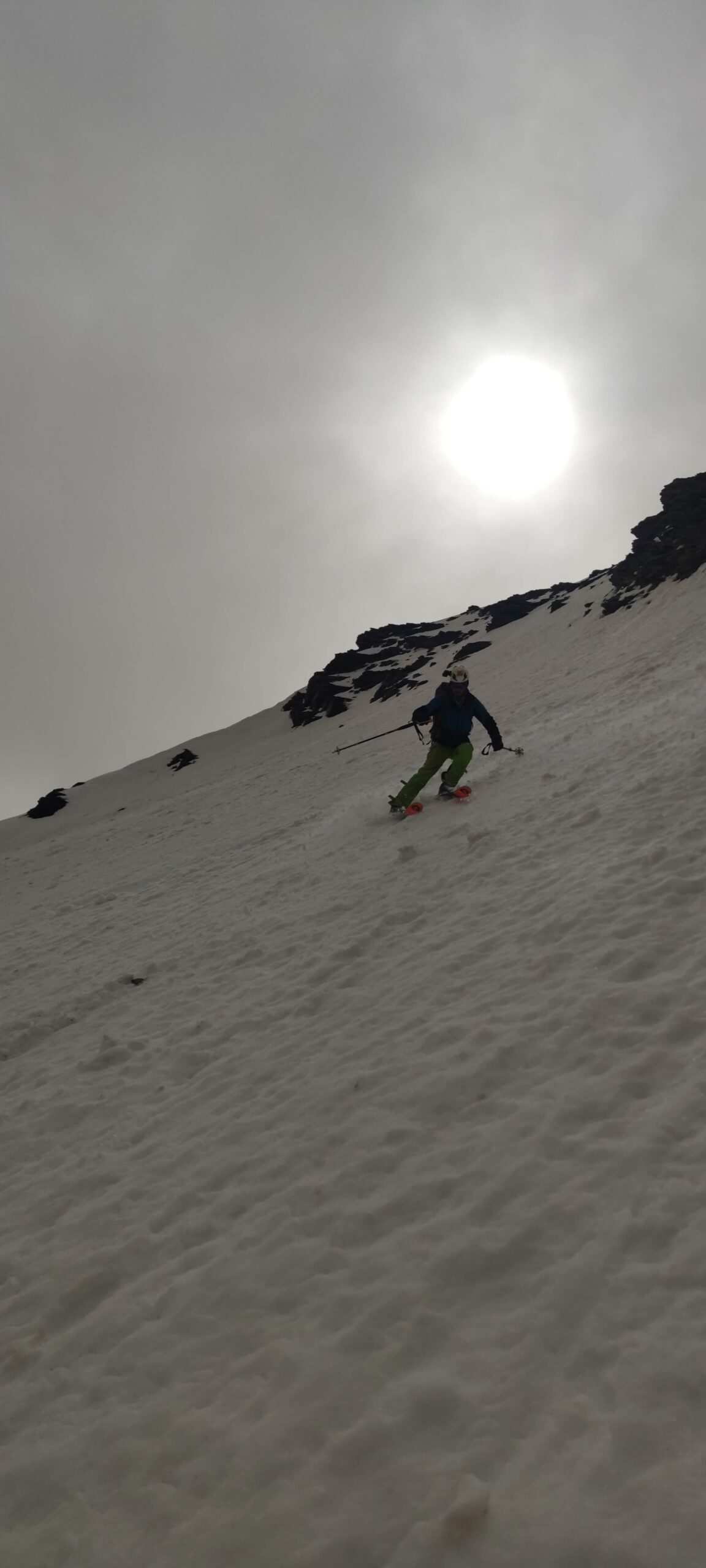 Partiti alle 5.40 da pian dell agnello una breve camminata di 20 minuti, e su dal col Vieux. Salita alla Rocca Rossa per dare un occhciata all itinerario. Discesa verso la Breche de Rouine su neve marcia appena appena rigelata in superfice per i primi 100 mt poi marcia ma con un fondo, dalla Breche abbiamo perso circa 400 mt per riuscire a beccare la combetta piu comoda per salire. ore 10.15 vetta! Discesa dalla variante di destra (un pelo piu ripida) scendendo qualche mt a piedi su sfasciume in direzione N(ingresso della parete delicato su cornici) parete non proprio in super condizioni, tanti vecchi slavinii però essendo marcia comunque ben sciabile! La comba sotto era da 5⭐️