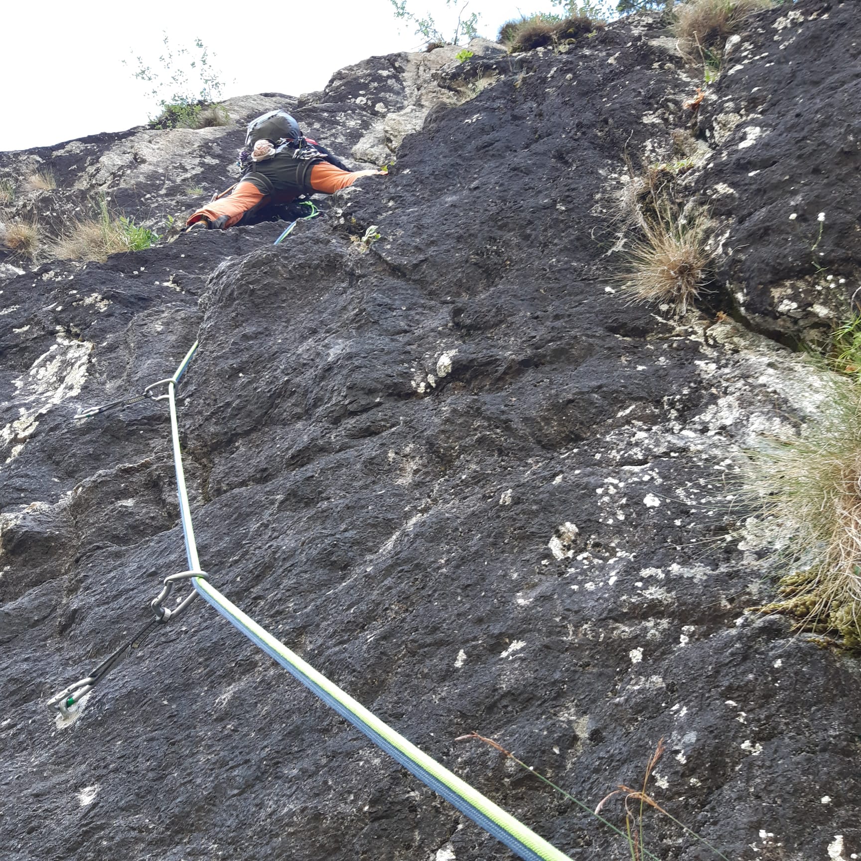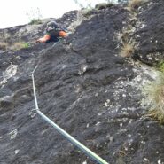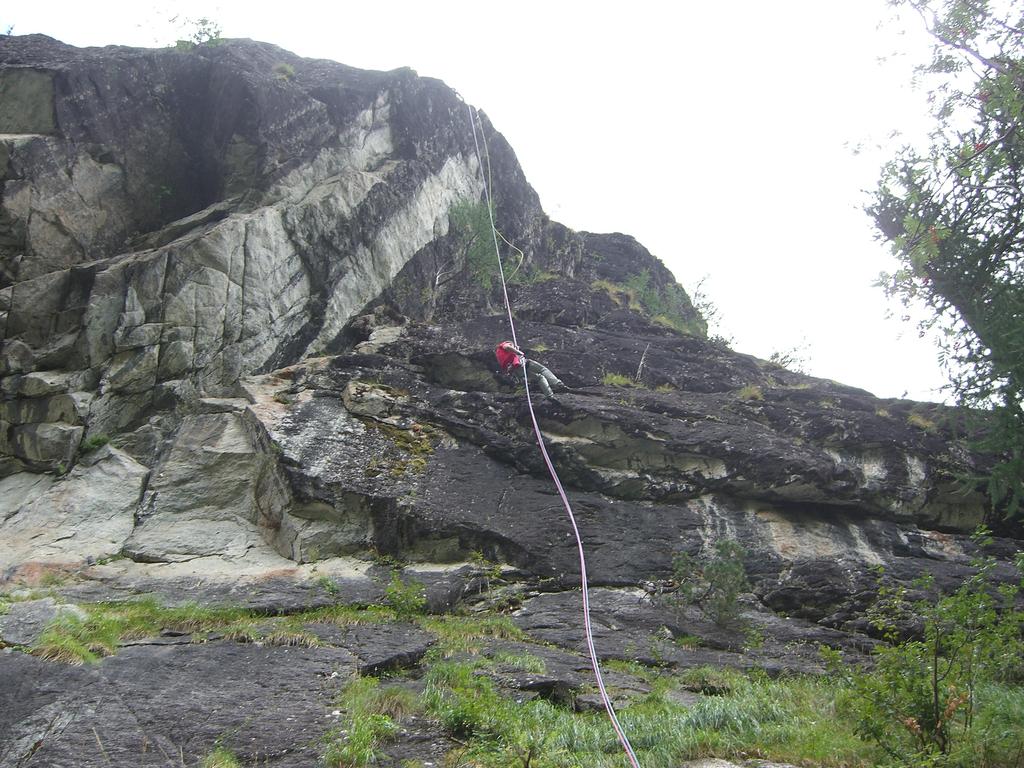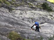 Bella arrampicata prevalentemente di aderenza (un solo tiro verticale e atletico). Discesa a sinistra della via in 5 doppie di 45 m circa. Impressionante la partenza dell'ultima tutta nel vuoto.