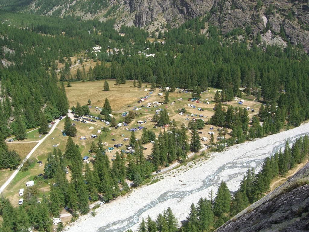 Accesso: imboccare lo stradino immediatamente dietro alla casetta di entrata del camping e seguirla fino alla passerella sul torrente di celse Niere. Seguire il sentierino fino alla base della parete (evidente). La via é l'ultima verso dx della parete ( a dx del settore ecole d'escalade).