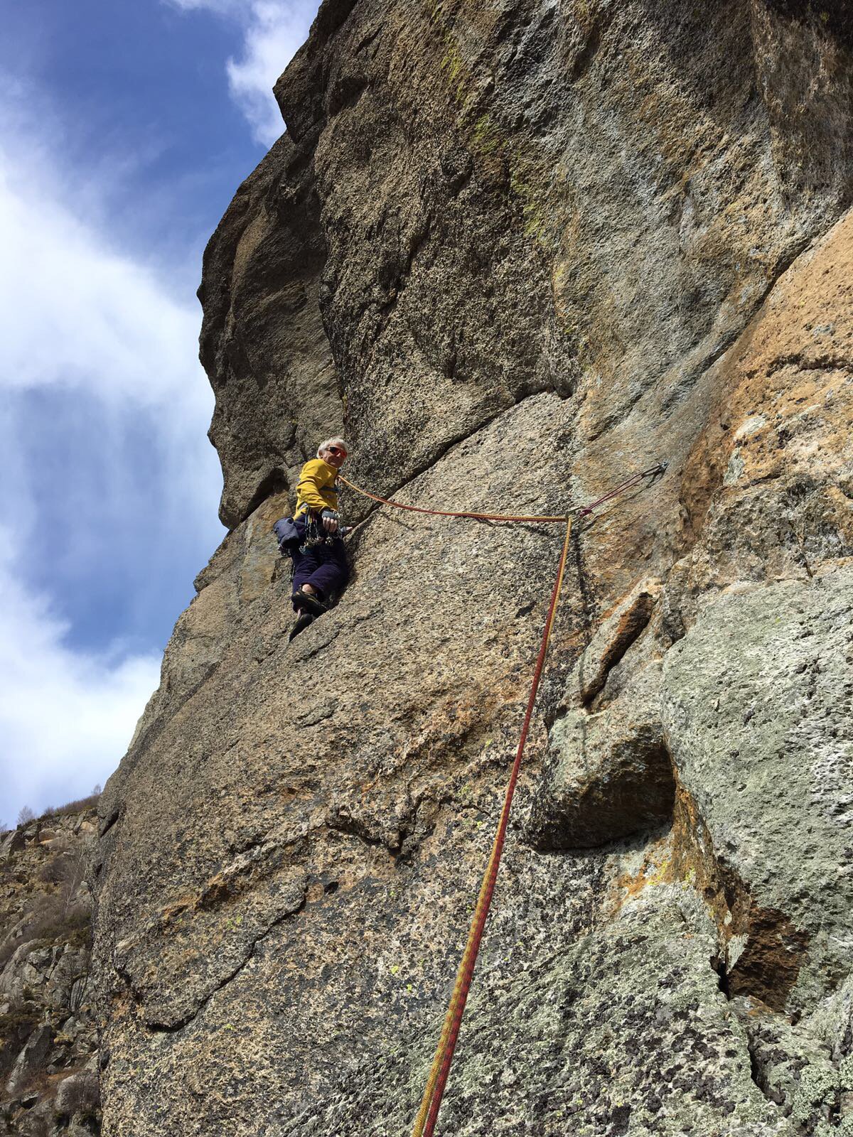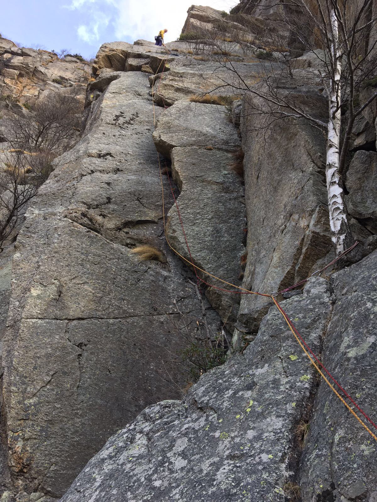 Davvero carina …ora che non ci sono più i blocchi pericolanti …. Con Dariun e il vento che ci arrotola le corde!! Sul terzo tiro partire più a dx possibile per fessure la roccia è migliore