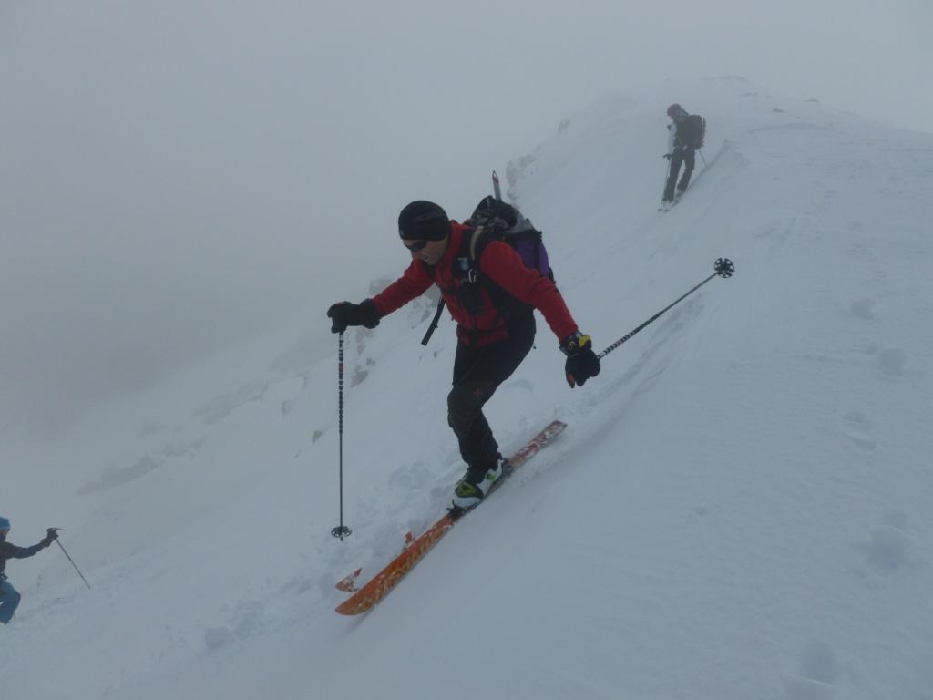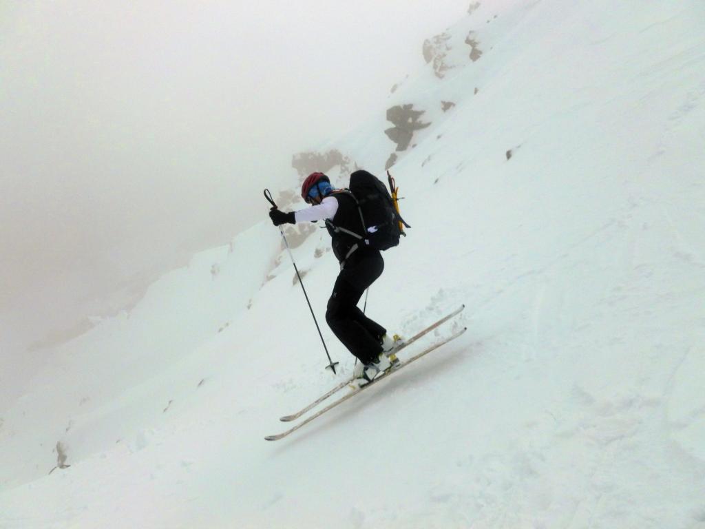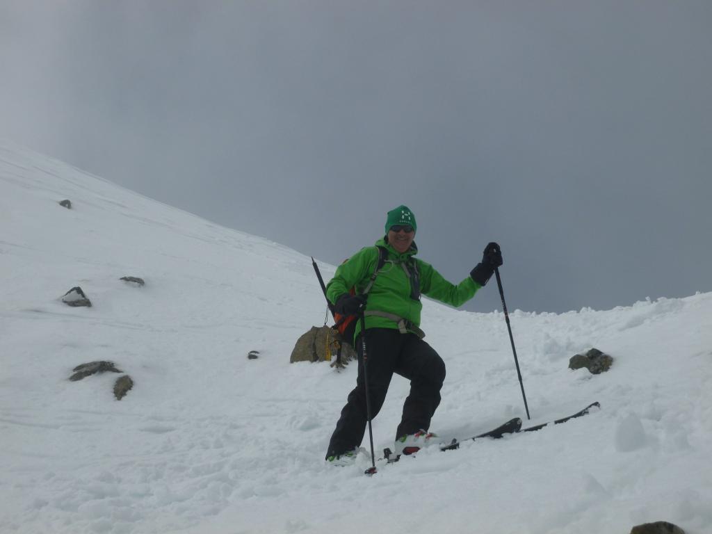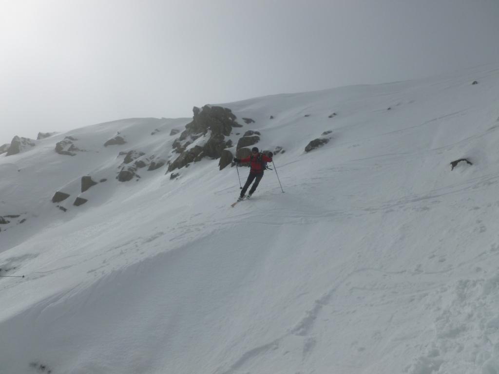 Bella salita e discesa su neve molto umida, lasciati i ragazzi a ripetere i canali più a sud . Con queste condizioni di innevamento merita una puntata in questa zona.