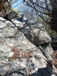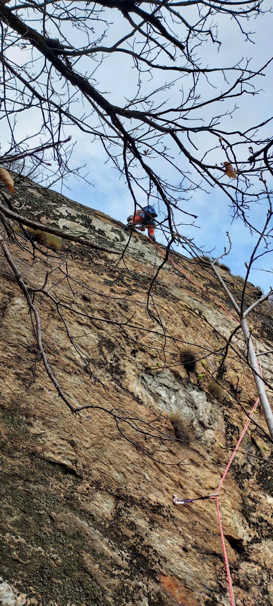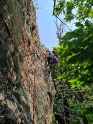 - L3 : salire il corto strapiombino con buone tacche 10 m sosta su albero 10 m 5b.