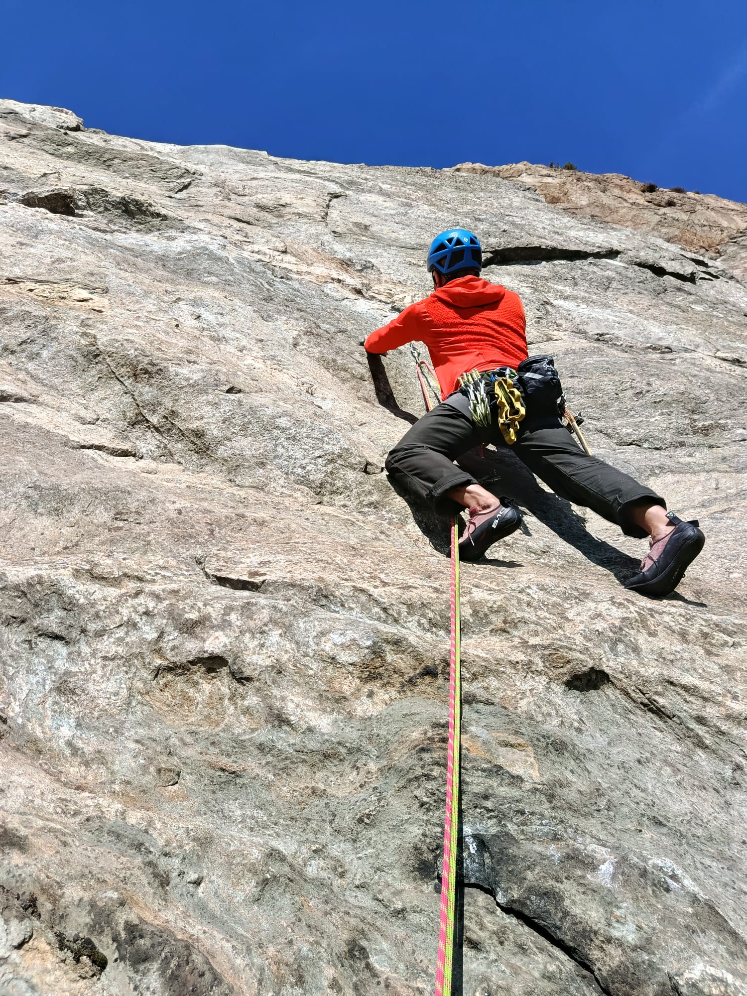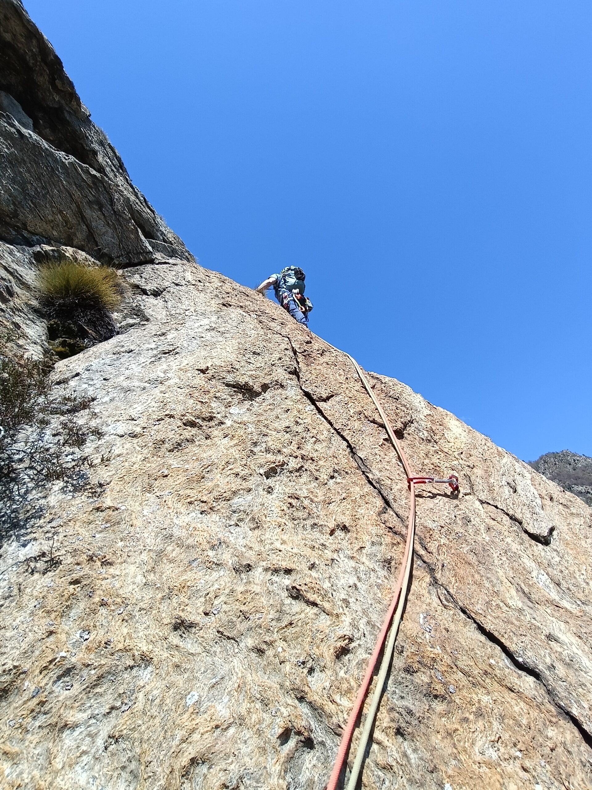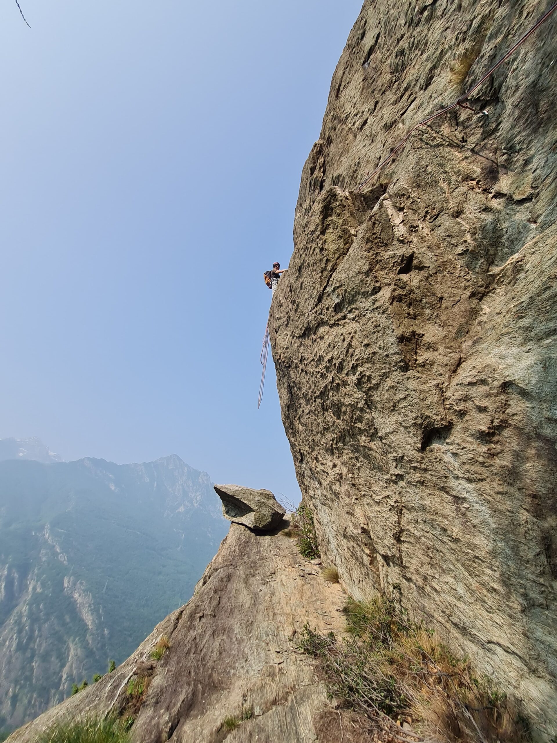 - L9 : entrare nel corto ma delicato diedrino (chiodatura rassicurante ) poi in verticale più facile 20 mt passo di 6a poi 5°.