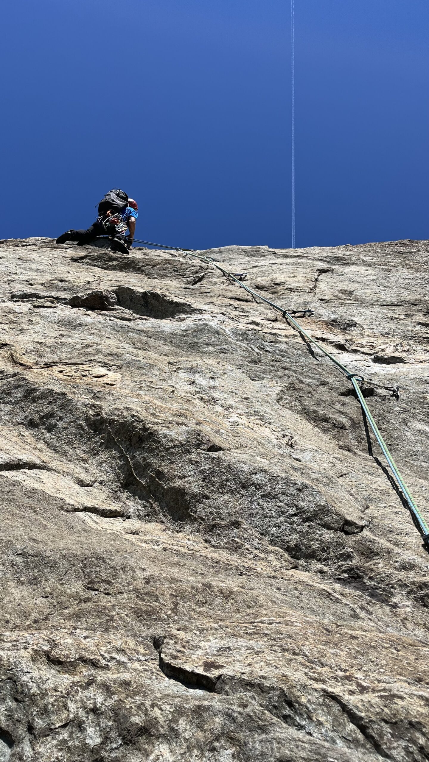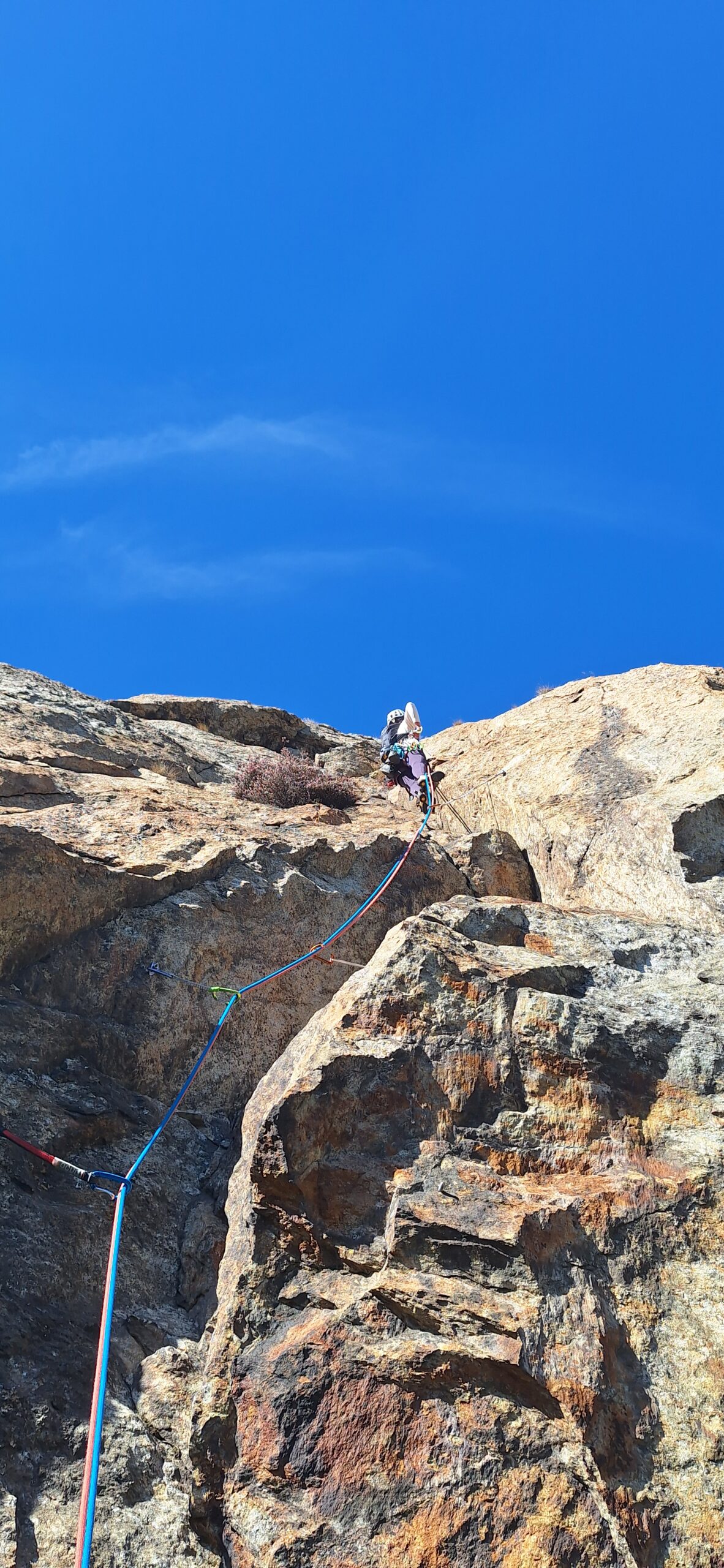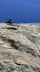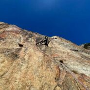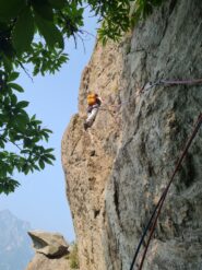 - L7 : qui la parete si fa più verticale, stupendo tiro su tacchette piccole ma nette, buon uso dei piedi con movimenti bellissimi! (chiodatura ottima e rassicurante) 20 m 6a+.