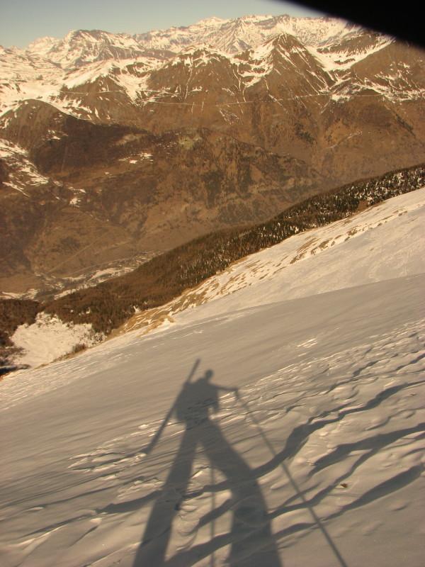 Grazie alla presenza di una traccia salita agevole, più per Mone che per me. Gli ultimi 600m li ho fatti a piedi per la scollatura di una pelle; Mone e giunto con le assi fin verso i 2900, da lì in su il vento ha lasciato solo le pietre ed abbiamo raggiunto la vetta a piedi.