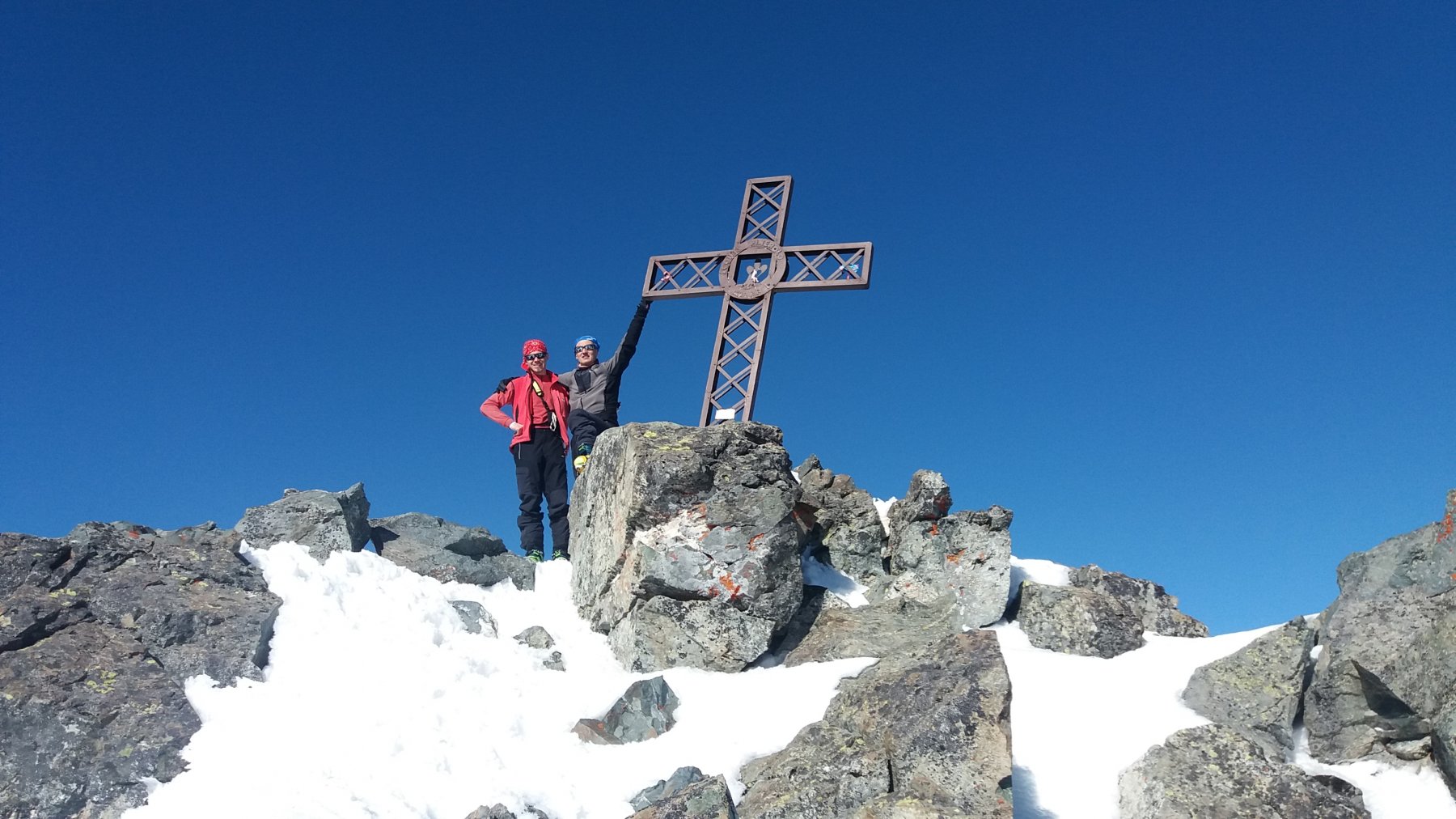 Gita impegnativa in ambiente severo che richiede buona tecnica e allenamento. Si sale senza problemi nel bosco, in parte seguendo la strada e in parte tagliandola. Dopo il bosco il panorama si apre e la traccia verso la vetta è evidente. A quota 2.450 abbiamo messo i rampant che in alcuni tratti sono necessari. Gli ultimi 150 metri li abbiamo saliti con i ramponi in quanto il pendio finale, piuttosto ripido, era anche molto duro. Una piccozza potrebbe non essere del tutto inutile. Dalla croce di vetta si gode un panorama meraviglioso a 360 gradi. Il sole caldo e l’assenza di vento ci hanno indotto a aspettare oltre le ore 14 per scendere, sperando che il pendio si ammorbisse. Così non è stato. Discesa buona solo in alcuni tratti intermedi dove si trova ancora farina, sia pure un po’ pressata dal vento. Per il resto alternanza di crosta portante e non portante e neve già primaverile nel bosco. Con Luca e Matteo.