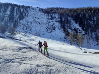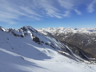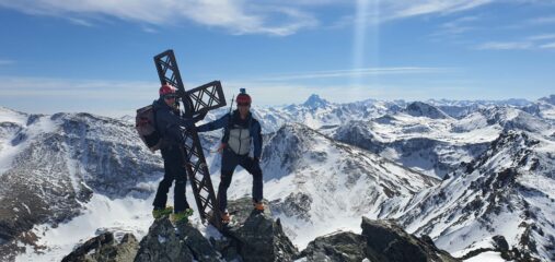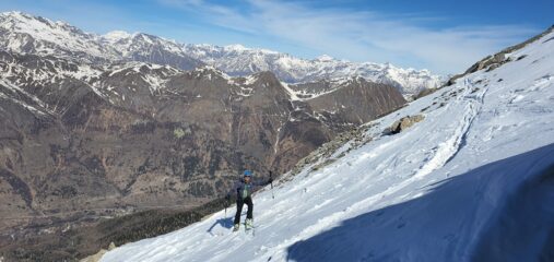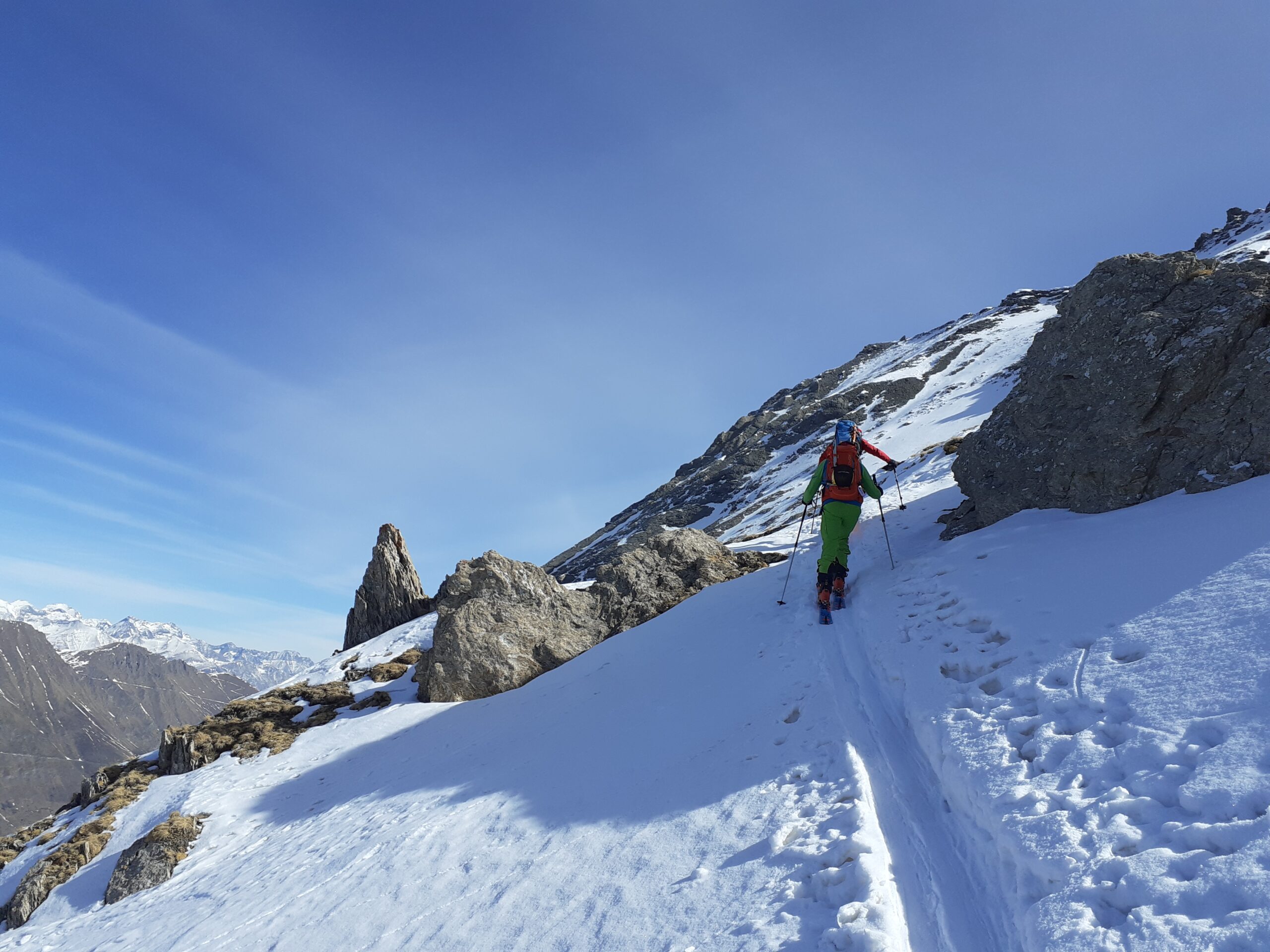 Si parte (ancora per poco) dalla frazione di Soucheres Basses con gli sci ai piedi. La strada che attraversa il bosco può essere tagliata in più punti per rendere più veloce la salita. Giornata fresca e soleggiata, con venti moderati. Con le attuali condizioni sono consigliabili i rampant da quota 2.550. A circa 150 metri dalla vetta abbiamo messo i ramponi salendo su terreno misto per la mancanza di neve. La piccozza può essere utile ma non è necessaria. Si guadagna agevolmente la cima salendo su facili roccette. Panorami super grazie anche alla visibilità ottimale. Discesa molto buona, a parte qualche pietra nella parte alta dove si trova ancora ottima neve farinosa. Da quota 2.000.in giù il manto diventa primaverile e molto divertente da sciare. Si arriva praticamente con gli sci a Soucheres Basses. Una giornata al top con gli amici Alfonso e Matteo.