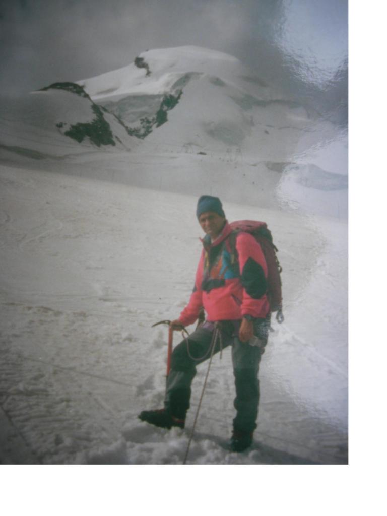 Accondisceso l’idea del compagno Michele di optare per l’Allalinhorn, una volta arrivati alla Britanniahutte, a scapito del Rimpfish, che per questa volta rimarra’ un sogno nel cassetto. Tutti i 4000″ del circondario erano incappucciati nelle nuvole, ad eccezzione dell’Allalin, l’unico sgombro da esse. Ed e’ li’ che siamo andati lungo la sua non difficile cresta est. Ma per andarla a prendere il prezzo da pagare, era il superamento di una miriade di crepacci dell’Hohlaubgletcher che non davano adito a distrazioni. Nel mentre ci accingevamo a superare la cresta poco piu’a nord di dove eravamo, sul Dom-Tashorn imperversava un temporale, con lampi che infuocavano il cielo. Eravano ai confini tra il decente e il pessimo. Ma malgrado il quadro poco confortante, siamo riusciti ad avere comunque una discreta fetta di panorama dalla vetta. Scendiamo dalla normale lungo la cresta nord-ovest, battuta dai venti. Sul gruppo del Michabel il cielo era di un nero inchiostro. Rientrati alla Britanniahutte passando a lato del Metro Alpin, dopo un ultimo sguardo tutt’attorno dal Feejoch. Infine rientro a Sass Fee abbastanza (anche se non del tutto) soddisfatti.