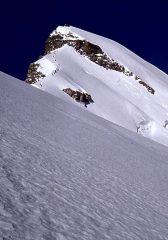 Con gli impianti sino a Felskinn. Notte alla Britannia. Il giorno seguente sono salito per l’Holaubgrat e sceso dalla normale fino al ristorante del MittelAllalin. Giornata radiosa. Cresta ben innevata