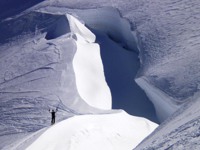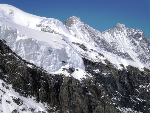 saliti con la prima funivia…il pendio ripido subito all’uscita dal felskinn non era tracciato(se non da discesisti)…poi via sulla traccia clessica che proviene dal trenino….