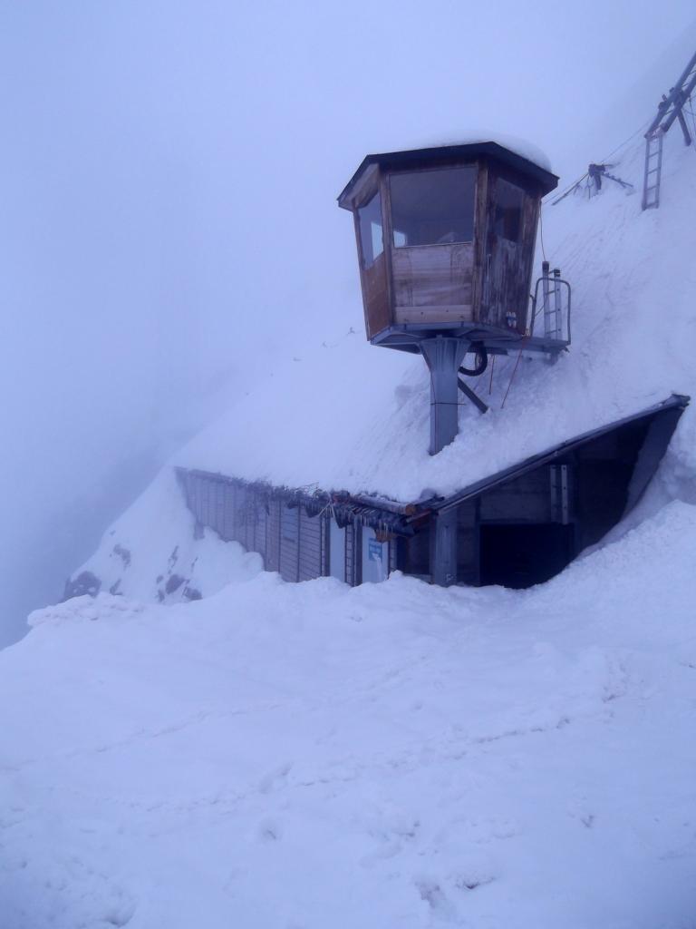 Partiti dalla Britanniahutte,lungo e noioso traverso nella nebbia più totale, ma poco più su si apre ed il cielo diventa blu! Assenza totale di umani su tutta la salita (a parte la zona piste dove erano in corso lavori) e traccia da battere, più profonda solo nella parte alta dove ci leghiamo perchè si passa vicino a crepacci piuttosto grandi.