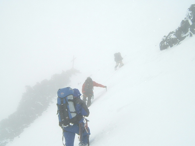 Si prosegue in sci superando a sinistra un tratto più ripido, quindi si aggira sulla destra la sommità giungendo alla cresta terminale.