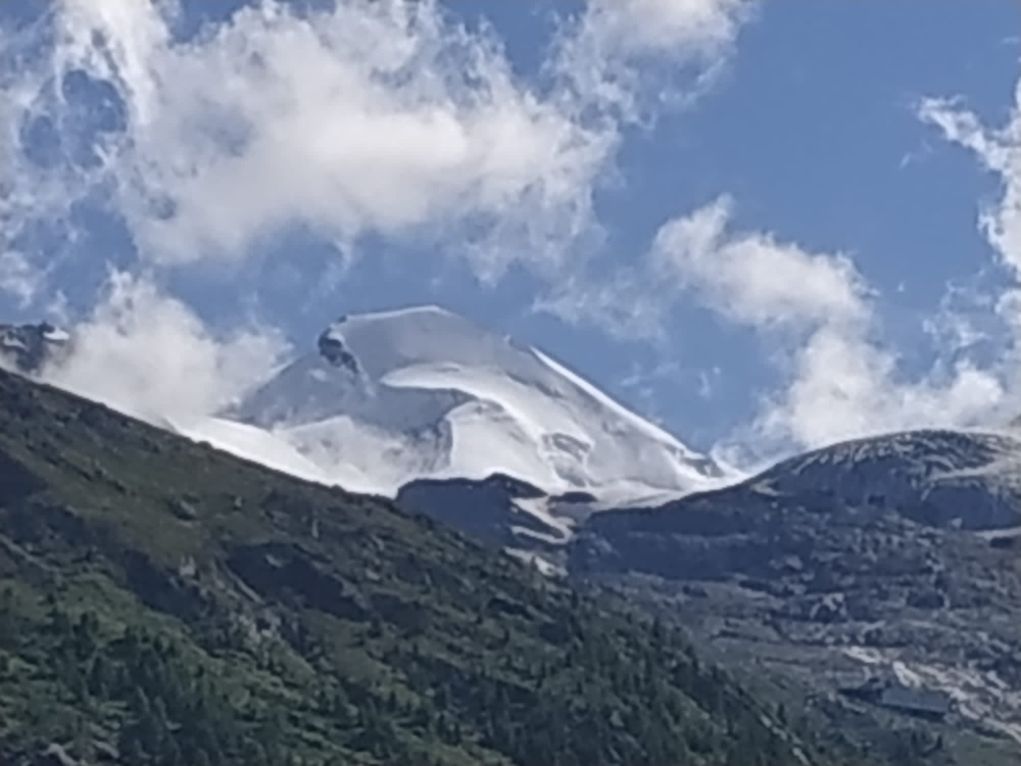 Uscendo dalla stazione si ha di fronte la parete nord est dell’Allalinhorn.