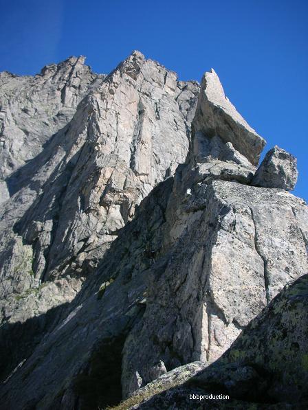 Senza una buona relazione è difficile intuire quale sia la linea di salita, infatti il percorso è tutt'altro che logico e cerca i punti deboli dell'enorme spigolo a volte ad EST a volte ad OVEST.