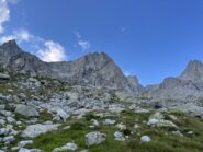 Si scende lungo il versante Nord-ovest seguendo i numerosi ometti fino alla sella rocciosa.