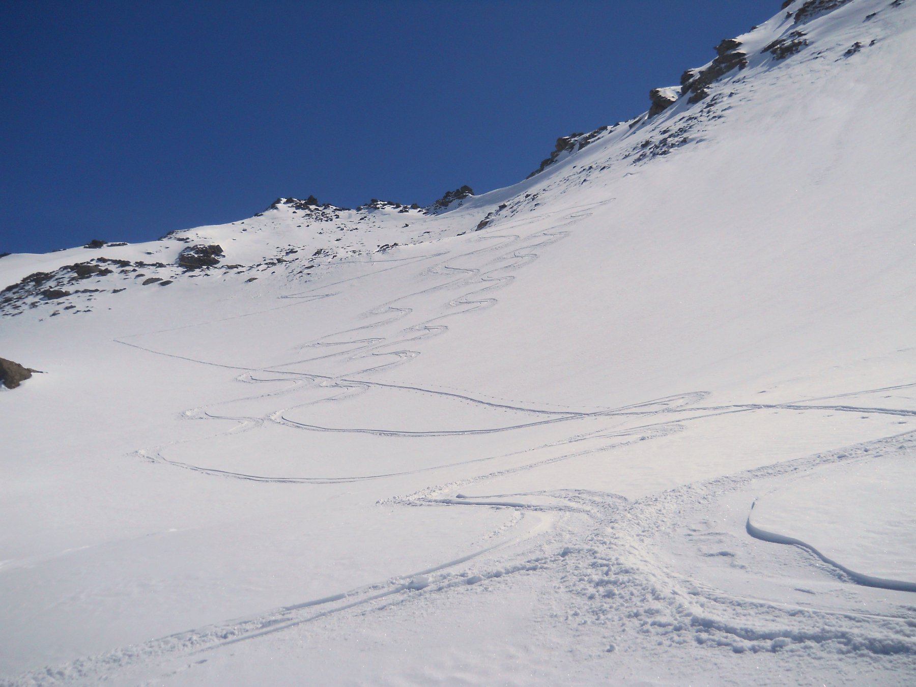 Ambiente grandioso con ottimo innevamento. Arrivati al pendio finale abbiamo preso la spalla all’estrema sinistra per evitare traverso con cornice.