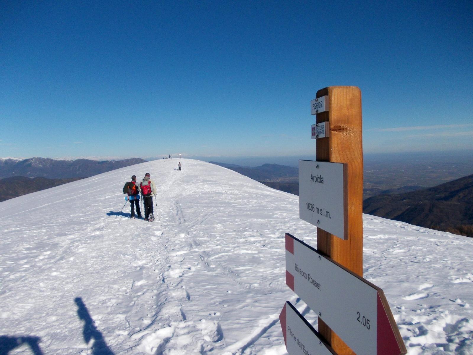 Dopo la salita al Tagliarè siamo risaliti all’Alpe,raggiungendo il Colle Arpiola dalla conca sopra Pralup.Oggi parecchi escursionisti in cima,alcuni senza racchette,qualcuno è andato verso il Beccas.Finchè persiste questa situazione è possibile fare delle belle escursioni.Un saluto a tutti e in particolare alle due compagne di gita:Angela e Margherita