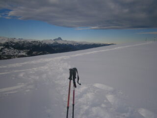 Classicissima con le ciaspole che dal chiot Rosa si possono calzare da subito. Io sono salito da destra trovando solo un ecsursionista in vetta con cui ho cianciato a lungo (Gianni che saluto) e tornato passando da Paraloup incontrando non meno di una cinquantina di persone. Neve perfetta per le ciaspole, tracce presenti da ambedue i lati di salita, visuale (come al solito) stupenda.
