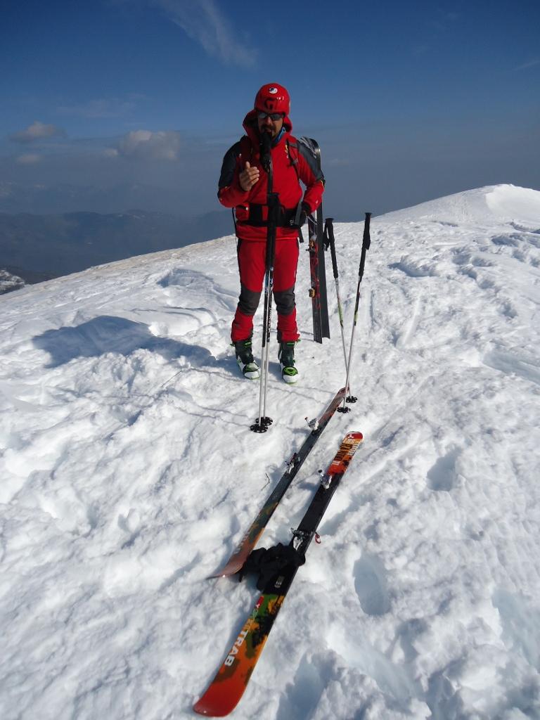 Oggi con Demis che non era mai stato sull’Alpe. Le condizioni rispetto a giovedì scorso sono cambiate molto. Dal Gorrè la neve è quasi sparita e nel bosco bisogna fare peripezie per trovare una via di salita ancora innevata. Oggi seguito una traccia probabilmente di ieri che aveva ancora qualche rimasuglio di neve residua. Una volta giunti ad incrociare la strada che arriva dal Chiot Rosa la situazione migliora e si riesce a salire ancora agevolmente nella parte alta del bosco sino a sbucare sulla dorsale. Dopo di noi altri due 2 skialp visti nei pressi della croce sulla colletta. In vetta neve molto tritata dai numerosi passaggi di racchette e dal lavoro incessante del vento. Discesi su neve comunque abbastanza portante che ha permesso alcune belle curve sino alla capanna del margaro dopo Paraloup e poi il bel canale con neve che non pensavamo di trovare leggera crosta con bella farina sotto sino ad incrociare la strada con neve dura che ha messo a dura prova i nostri muscoli. Comunque durerà poco.